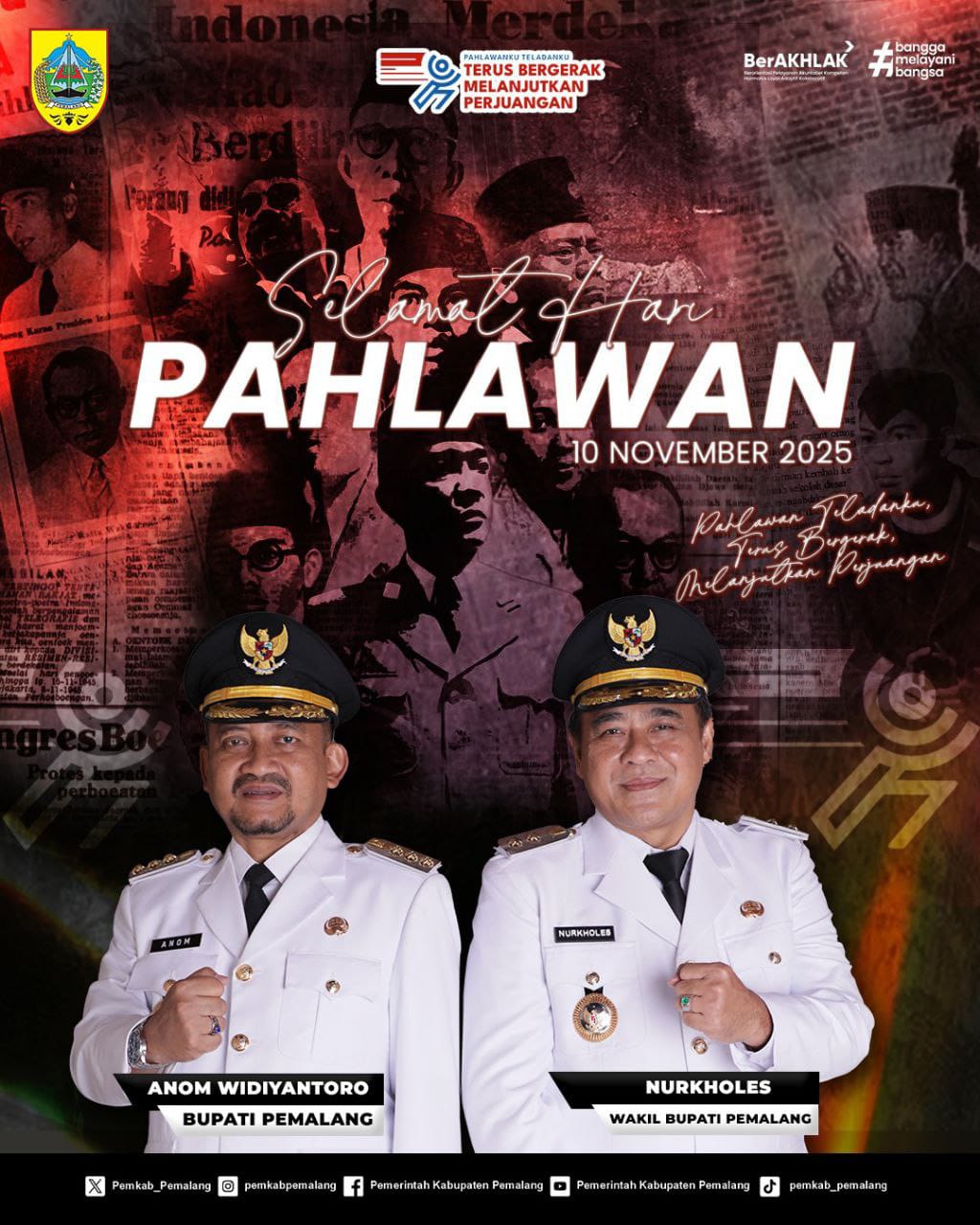 Beranda Blog Pemerintah Kabupaten Pemalang Ucapkan Selamat Hari Pahlawan 10 November 2025 BlogPemerintah Kabupaten Pemalang Ucapkan Selamat Hari Pahlawan 10 November 2025Pimred0 min baca10 November 202510 November 20253722×Pemerintah Kabupaten Pemalang Ucapkan Selamat Hari Pahlawan 10 November 2025Sebarkan artikel ini Post Views: 3,722 Pos TerkaitBlogPermudah Akses Produk Hukum, Diluncurkan Website JDIHBlogUcapan Selamat Hari Pahlawan Pjs. Bupati PemalangBlogUcapan Sumpah Anggota DPRD Kabupaten Pemalang Tahun 2024-2029BlogKeadilan Mulai Bersinar, Dalam Gelapnya Ketidakadilan